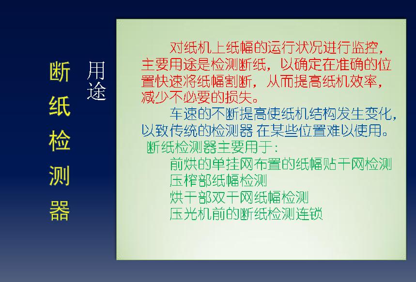 在多年为造纸厂的生产服务中吸收了多种欧洲造纸装备技术并转化吸收应用于国内造纸机的装备配套,为纸机的自动化装备性能得到更好的提升,改善纸机操作员的劳动强度。 目前主要产品为纸机上的自动化引纸系列及相关产品。长期服务于国内外各造纸企业及造纸整机制造企业,拥有良好的信誉和质量保证。..